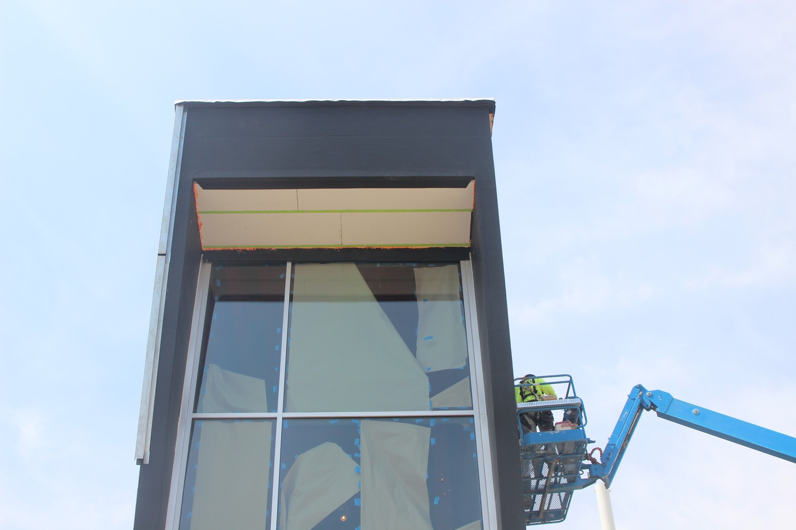 Over 10,000 sq.ft. of RevealShield SA Self-Adhered Water Resistive Vapor Permeable Air Barrier Sheet Membrane was installed over USG gypsum sheathing on the Holland Energy Park. Revealshield SA Self-Adhered is black, UV stable and creates the desired black reveal behind open-joint cladding.
