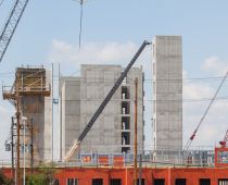 Approximately 270,000 sq.ft. of WrapShield SA Self Adhered Water Resistive Vapor Permeable Air Barrier Sheet Membrane is being installed on the new 9-story $90M Skyvue apartment building in Lansing. The panelized construction began at RGC in North Carolina where the panels were fabricated and WrapShield SA Self Adhered was applied directly to the sheathing, then Vapro-SS Flashing was added around the rough openings. The panels were then shipped to Lansing, Michigan where they are being erected on the Skyvue project.