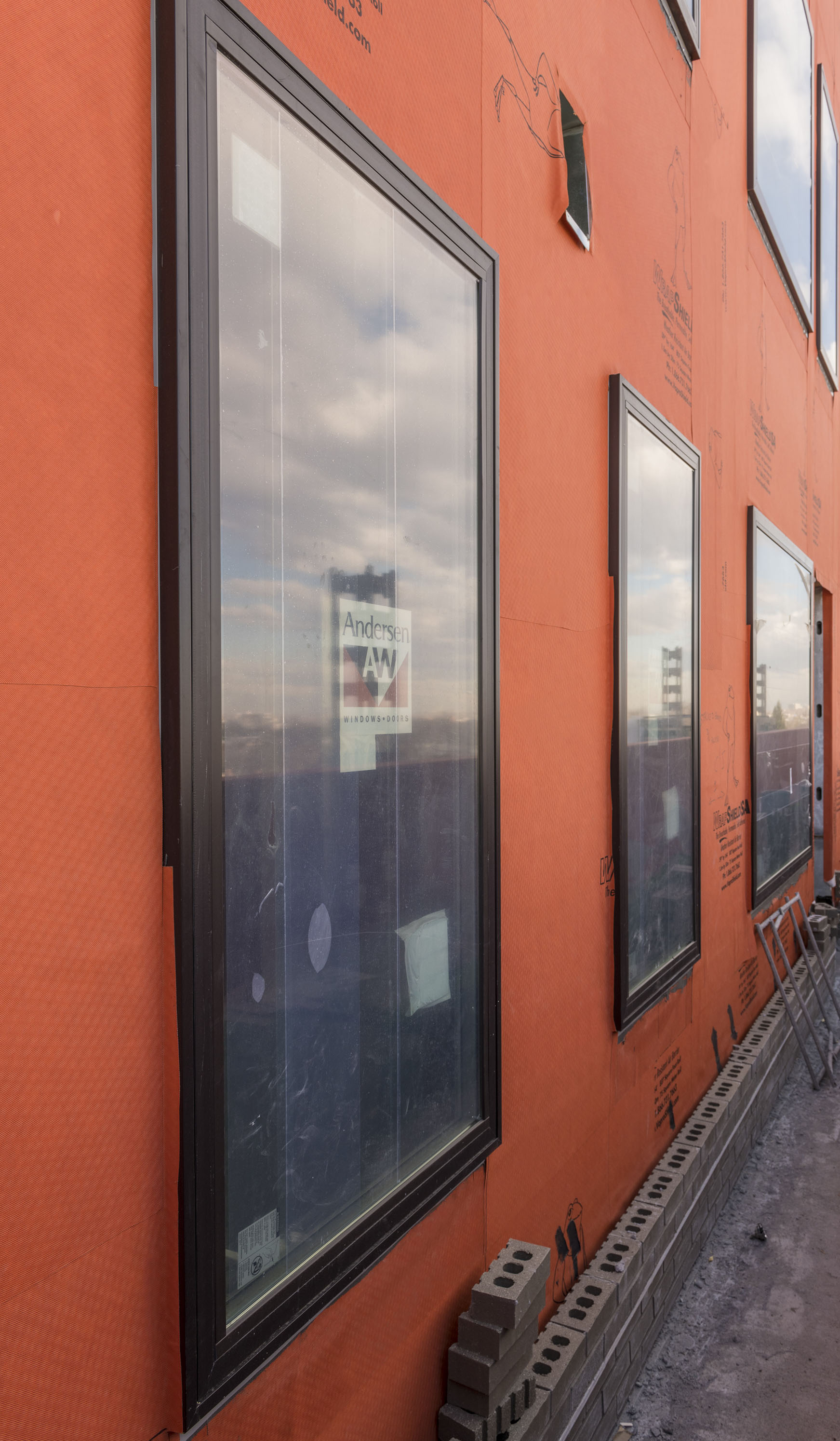 WrapShield SA Self-Adhered WRB/Air Barrier (orange) installed on The Lydian in Denver, Colorado.